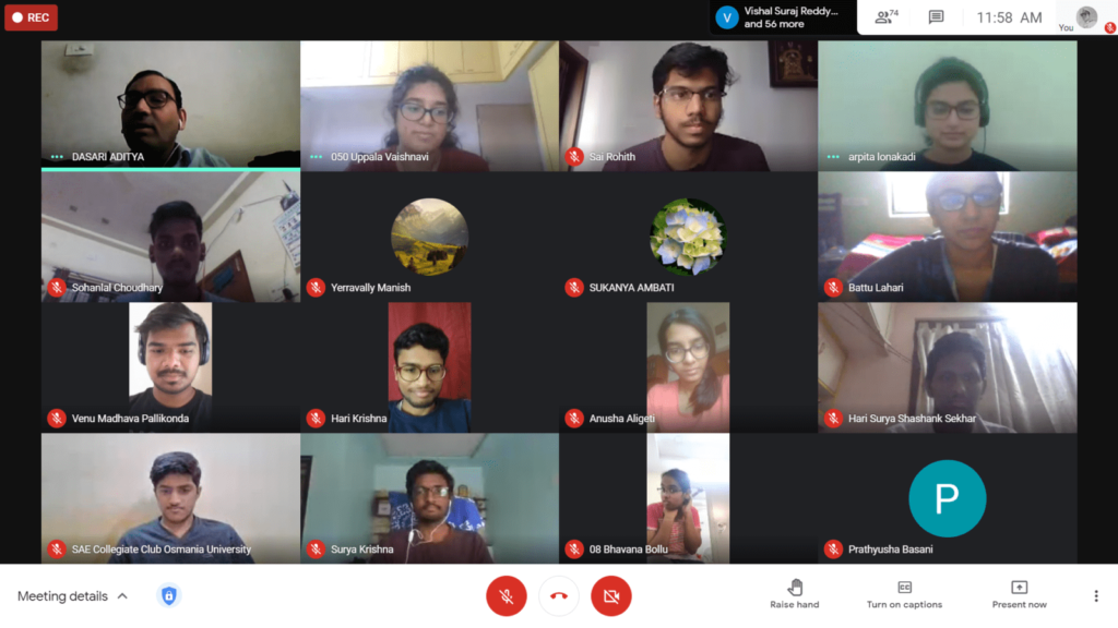 The speaker of this session was Mr.Murali Dasari, General Manager in Cummins India Ltd. The session started with the warm welcome of the faculty advisor of SAE Club OU Dr.V Uma Maheshwar who has been a constant support to the club. Later the speaker was introduced and was welcomed wholeheartedly. Immediately after the speaker took the charge of the webinar and shared his immense knowledge about the Automobile Industry and its dynamics. The respected speaker started the webinar by giving a glimpse of the present state of the Automobile Industry and the vastness and importance of the Automobile Industry in GDP as well as production. He later addressed the impact of the present Automobile Industry i.e jobs lost, seizure of dealership agreements, production cuts by OEMs, and also the reason for these adverse situations. Speaker made a point that though due to COVID 19 many sectors experienced a downfall and difficulty in functioning, this trend is been observed for the past 2 years. But there I’d been quite an increase in sales of 2-wheeler and 4-wheeler vehicles and a decrease in the sales of commercial vehicles. So to service in this sector one has to gear up themselves with the knowledge of emerging technologies like Hybrid Vehicles, Fuel cells, Electric Vehicles, etc. He also advised looking for opportunities in other sectors like DRDO, ISRO, Air Conditioning and Refrigeration Industries, Process Industries, etc. As an experienced person in core-Mechanical Engineering, Mr.Murali Dasari responds to the question of whether to go for a job or higher education after BE as to take up a job, gain some experience and then go for higher education and wisely choose the specialization course from the experience gained. Sir from his experience of recruiting for the jobs advised to present oneself in the resume, he told to use one’s comfort level of English and state all of their true strengths and academic achievements. The speaker personally advised us not to give up any opportunity that comes to us and choose the opportunity that is carrier driven. The knowledge packed webinar ended on an inspiring note that we should work hard towards our dream and do our best in our profession. This knowledge was imparted to about 80 young aspiring students which helped them in some or the other way to make better carrier decisions.